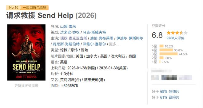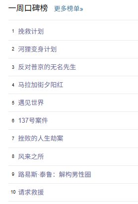 最后,还是例行附上一周豆瓣口碑榜的完整榜单: