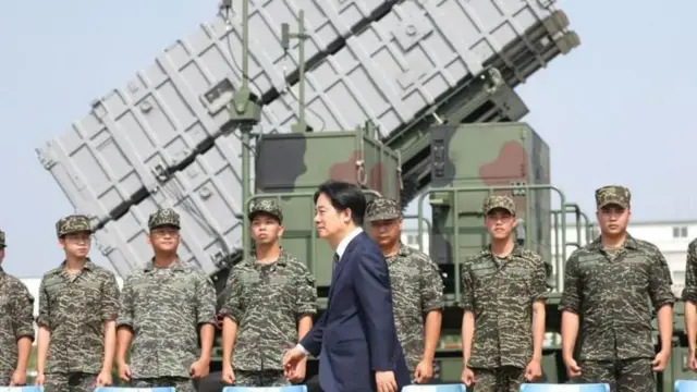 图像来源,AFP,赖清德政府提出的台湾有史以来最大的军购计划,引发在野党国民党及民众党反对,在立法院封杀十次。