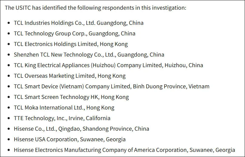 無獨有偶,就在此前壹天(3月31日),另壹項針對特定視頻功能電子設備(含智能電視、顯示器及核心組件)的337調查(編碼337-TA-1495)消息公布。
