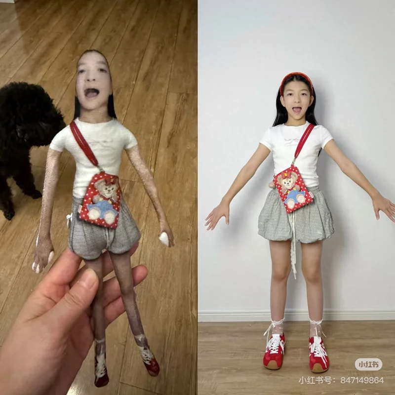 这只被小阳称为“老鼠干”的抽象玩偶,最近悄悄火遍了中小学校园。它不同于棉花娃娃的精致可爱,反而主打一个“丑萌”和“抽象”:瘦长干瘪、充棉量很少,图案印得简约又抽象,里面还藏着铁丝骨架,可以随便拗出劈叉、托腮等各种搞怪姿势。