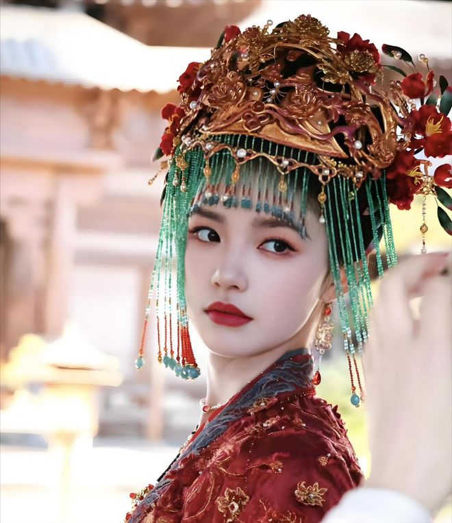 她的紅衣女鬼新娘造型看似高貴清冷,實則眼含怨念與慘烈、陰鷙與詭譎,令人看壹眼就覺背脊發涼、不寒而栗。
