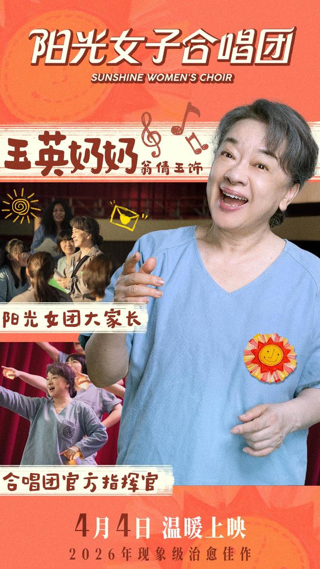 翁倩玉饰演的玉英奶奶年轻时曾是一名歌手,后来因被生活逼到绝境,选择以一种最极端的方式结束家暴丈夫、患病儿子和自己的一生,留下女儿独自生活。可偏偏玉英被抢救后活了下来,被送进监狱。她在“阳光女子合唱团”中担任指挥,也是众多狱友的精神支柱,但世事难料,她却在合唱团取得佳绩时因病离世。玉英用留下的一封信与女儿和解,讲出一辈子的遗憾和没说出口的爱,却无法再相见。这温柔却深刻的痛是全片最大泪点之一,令无数观众感动。