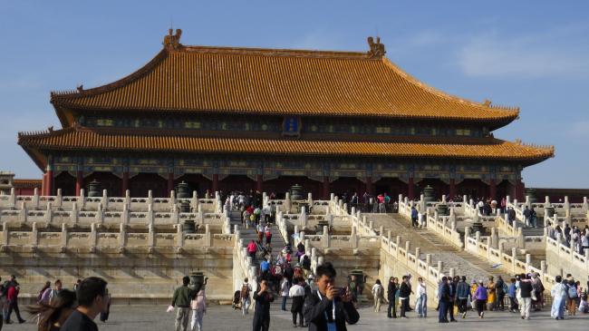 鄭麗文率團訪陸參訪北京故宮,參訪團在場合影留念。(楊騰凱攝)
