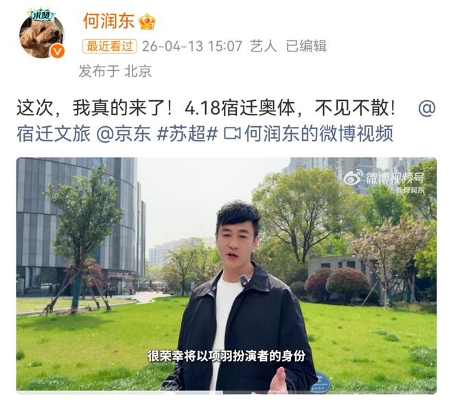 與此同時,這邊在網友的推動下,何潤東將於4月18日以“西楚霸王”項羽的經典造型亮相蘇超宿遷隊主場,為球隊助威。