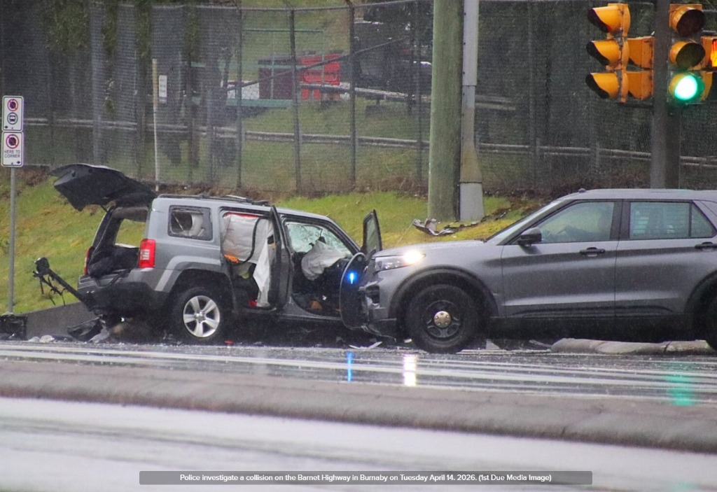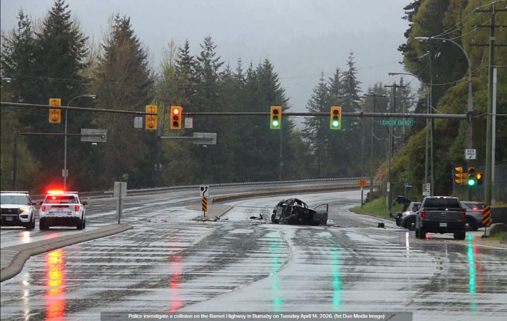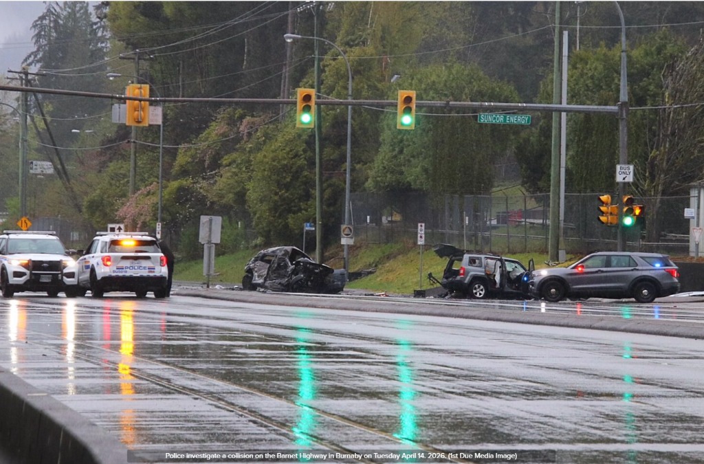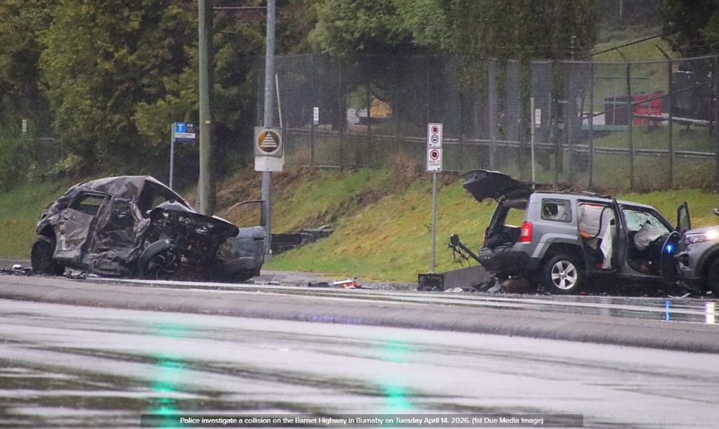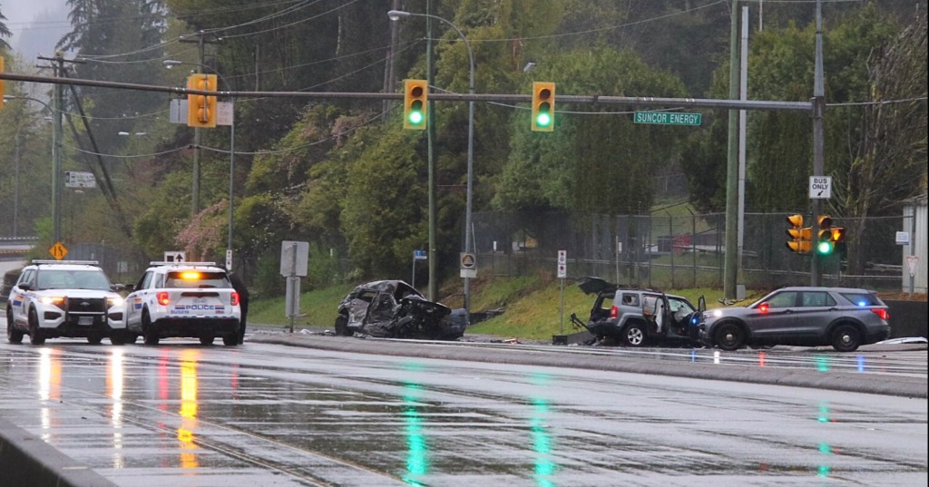 根据本拿比皇家骑警的信息,警方在早上7点前接报赶到事故现场,地点位于靠近 Suncor Energy 油品终端附近,事故涉及两车,初步判断为正面碰撞。