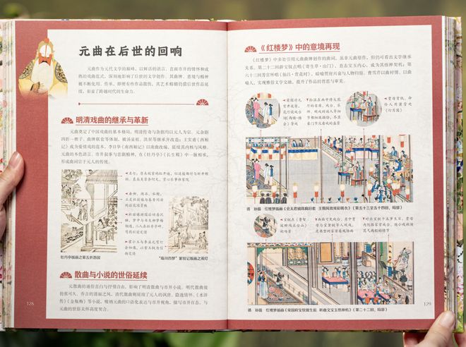 全书收录近800幅精美插图,包含历代传世名画 ,绝非简单配图,而是与元曲意境深度融合——