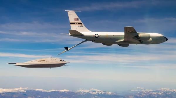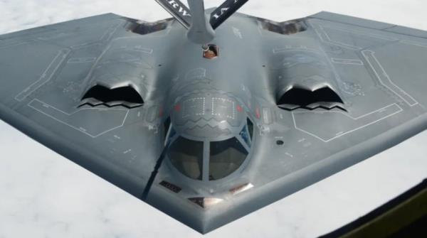 美国可搭载核武器的新一代隐形战略轰炸机“B-21突袭者”上身全貌与空中加油画面首次对外公开。
