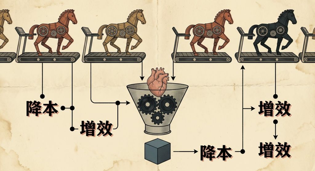在这期间,A小姐升职,开始带领团队,随之而来的是更大的压力,开始「向上管理」,要证明部门价值,也要执行裁员指标。有一段时间公司开始流行「降本增效」的极端口号,逼迫员工思考「怎么拿更少的人做更多的事」,形成了一套不断招、不断裁的机制——优先裁掉前几年扩张期招进来的、学历相对普通(普通一本或二本)、绩效不佳或成本较高的「老员工」,转而招聘学历背景更好(985高校、海外研究生)、更年轻、更聪明且工资相对较低的应届生或实习生——「又便宜又好」。那些日以继夜过着996生活、训练和优化模型的打工人,终于被模型给取代。