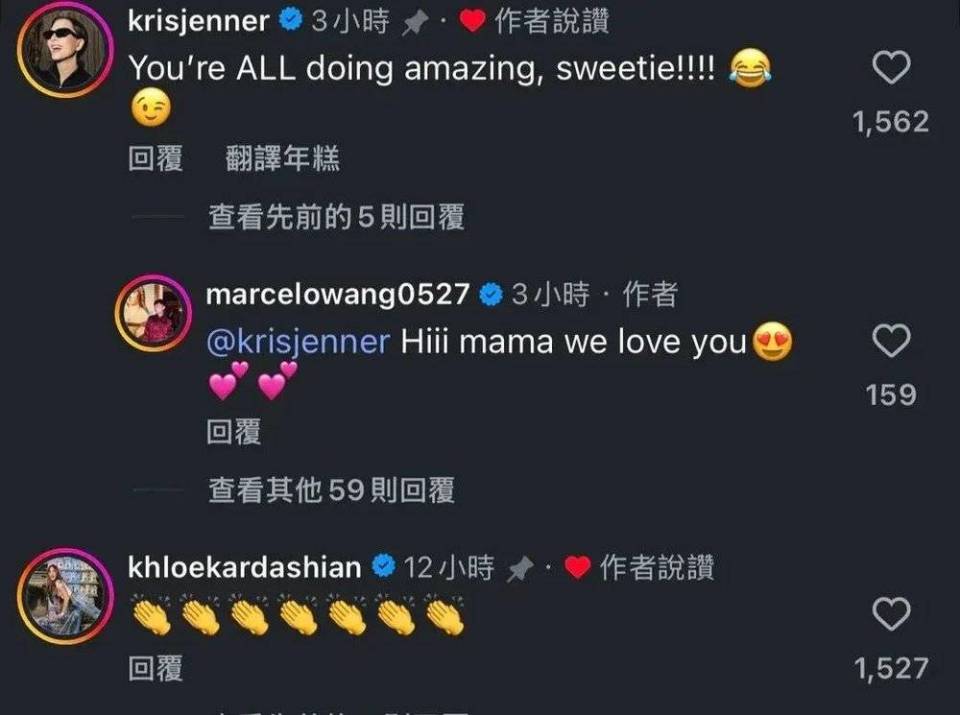 一位名叫@Marcelowang的TikTok博主将这次事件搬运到了外网,被Kris本人点赞,并且回复了她在真人秀里的那句名言:You're ALL doing amazing sweetie! (孩子们做得好!)
