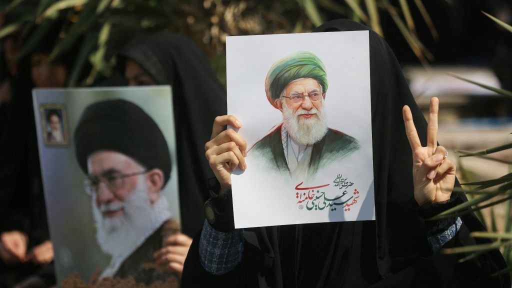 2026年3月6日,伊朗首都德黑蘭,壹名民眾在當日舉行的反以色列、美國集會上,手持已故前伊朗最高領袖哈梅內伊(Ayatollah Ali Khamenei)的畫像。(Reuters)