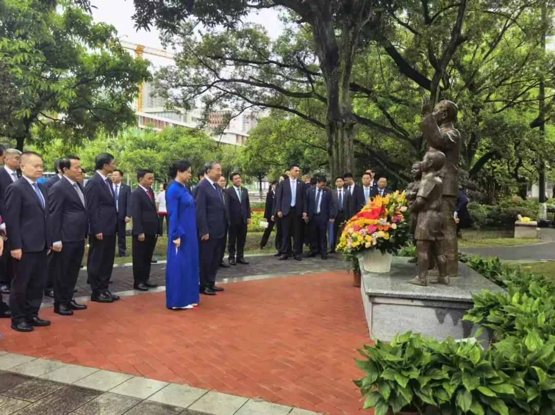 4月17日上午,越共中央總書記、國家主席蘇林到訪廣西大學,參觀原廣西南寧育才學校(即越南中央學舍區)舊址。圖/中新