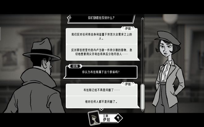 在酒吧任务中遇到的富人区贵族卡毕图,竟然在暗中提供资金,支持工人罢工;而主持罢工的领头人物伊娃,又与布拉斯有过一段情感纠葛。以布拉斯为中心向外延伸,意见不同的政敌、对遗产虎视眈眈的胞妹、曾经的情人,每个看似正面的社会人物,都流露出了杀人动机。