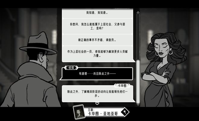 在酒吧任务中遇到的富人区贵族卡毕图,竟然在暗中提供资金,支持工人罢工;而主持罢工的领头人物伊娃,又与布拉斯有过一段情感纠葛。以布拉斯为中心向外延伸,意见不同的政敌、对遗产虎视眈眈的胞妹、曾经的情人,每个看似正面的社会人物,都流露出了杀人动机。