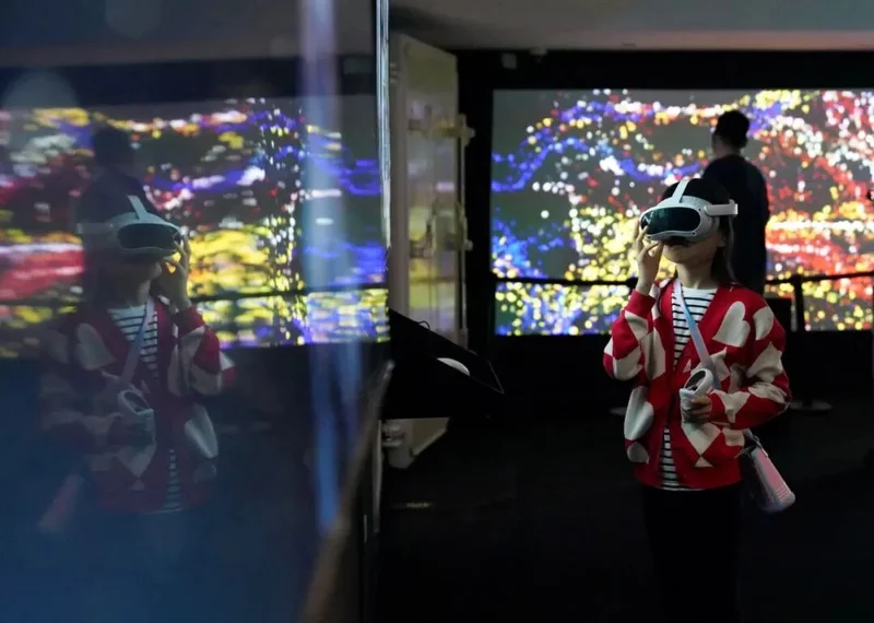 小朋友在首屆中國數字藝術大展上進行互動體驗/新華社記者韓傳號 攝