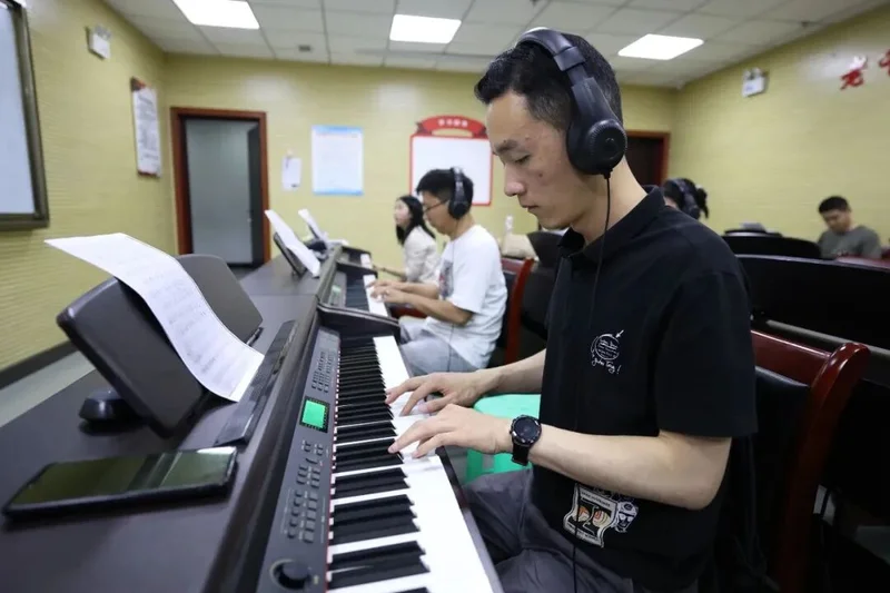 學員在貴州省貴陽市觀山湖區青年夜校喀斯特廣場校區學習鋼琴/新華社記者劉續 攝