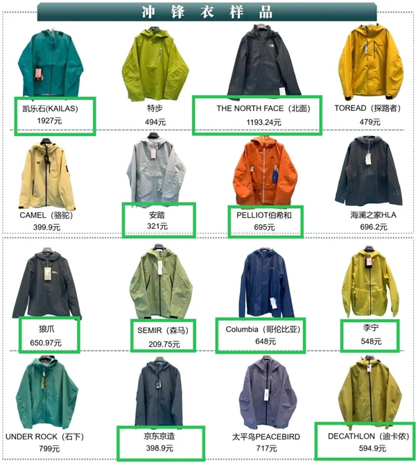 根据深圳消委会去年 12 月的一篇抽检报告显示,16 款 209 ~ 1927 元的冲锋衣中,所有样品均未检出 PFOS,8 款品牌样品未检出 PFOA,这两种物质检测结果均小于推荐性国标 1.0μg/m² 的有 10 款。