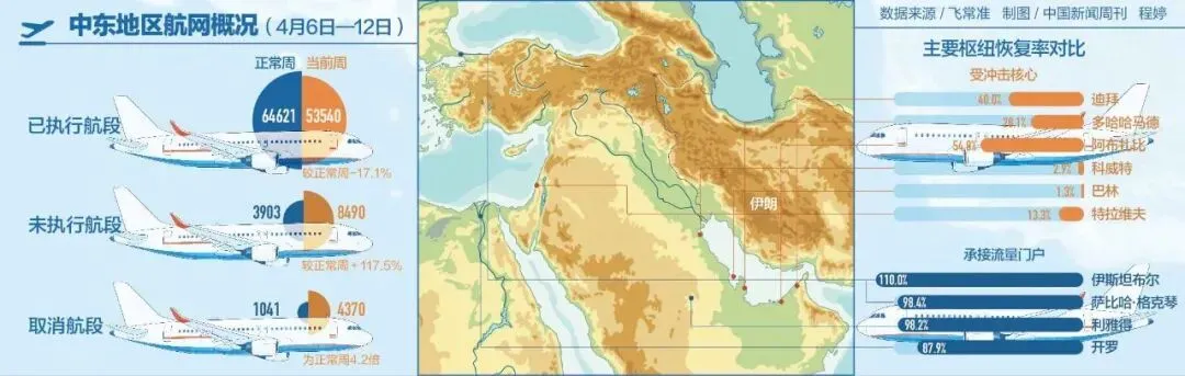 公開數據顯示,戰爭爆發前,中東叁大樞紐在全球中轉市場的占有率高達20%至30%。