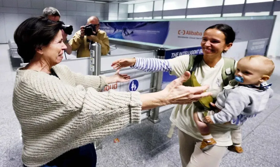3月3日,人們在法蘭克福國際機場迎接親友。當日,受伊朗局勢影響導致空域關閉及航班取消之後,首架來自中東的阿聯酋客機重新降落在德國法蘭克福。圖/視覺中國