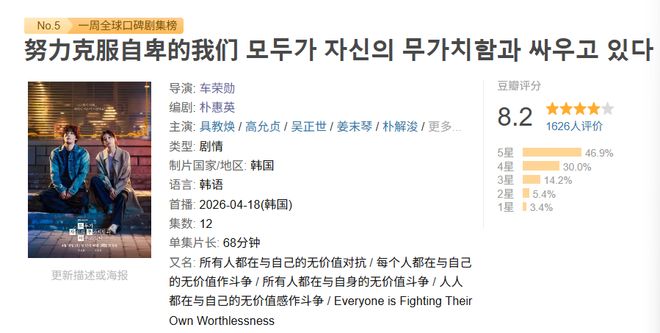 而最近有套新剧,倒是把这种情绪表达得更加清晰,那就是新开播的韩剧《努力克服自卑的我们》