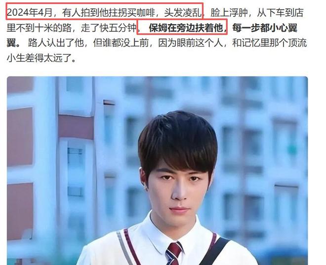 2024 年 4 月,有媒体拍到陈学冬拄着单拐,在北京街头买咖啡,保姆全程在一旁搀扶。