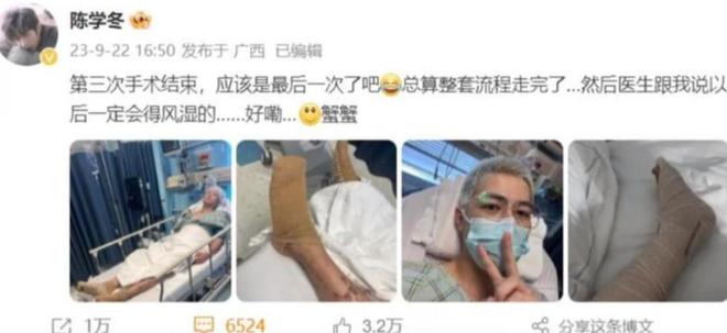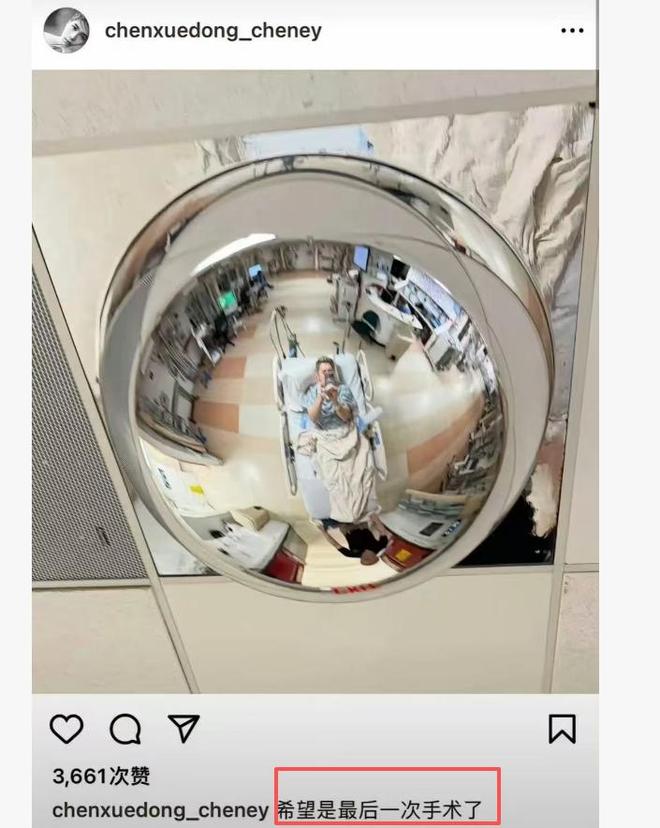 去年,他还晒出了病床自拍,配文 “希望是最后一次手术”。