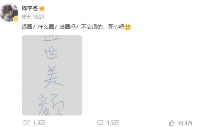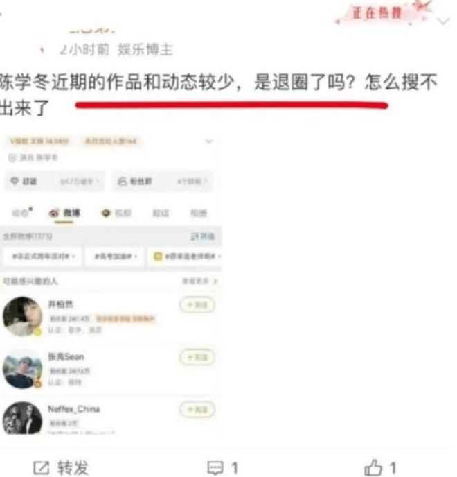 自然而然地,就引发了网友关于 “陈学冬要退圈” 的猜测。