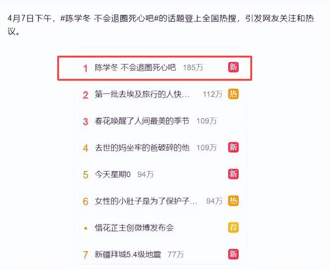 刚开始,陈学冬并不在意,也没有理会这些流言。可谁也没想到,他退圈的说法,竟然在 2024 年直接冲上了热搜。