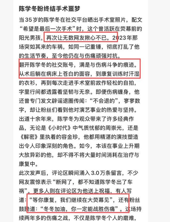 不用多说也能知道,这期间,陈学冬肯定经历了漫长又煎熬的治疗。