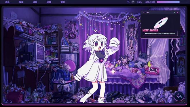 所以,如果再回头看看《晕晕电波症候群》,你会发现其中的许多设定,都是对现代亚文化和“电波系”标签的量身运用——游戏里那个突然出现,又不断向小Q搭话的小恶魔“晕晕”,本身就来自日语中电波传输时的拟声词“ゆんゆん”(YUNYUN);家里蹲的主角是社会层面上的边缘人,凭空出现的动画角色是精神异常后的幻觉,而通过不断吸食“电波”来引起阴谋论的怪文书,则是她在自我中心的世界中,试图改变境遇的唯一手段;最后,它还有让所有亚文化爱好者都会眼前一亮的电波曲库。