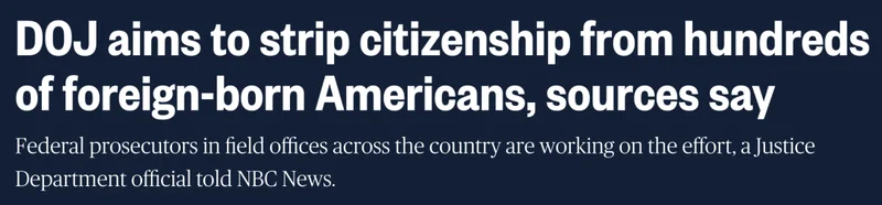 随着特朗普政府加强移民政策,司法部首批撤销国籍的名单已锁定,计划撤销至少300名外籍出生美国人的国籍。