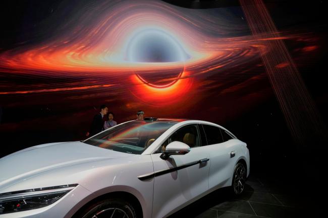比亚迪发表电动车的闪充技术。(比亚迪官网)