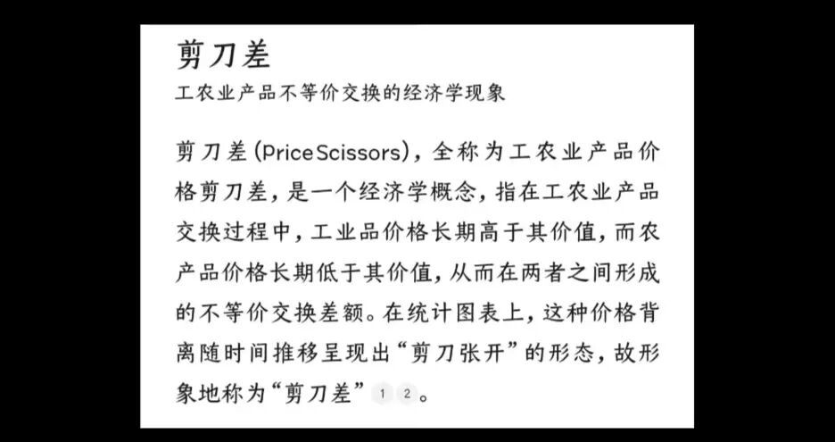 寫下上述壹段話,既是出自我對於農村對於家鄉的了解,又來自於對於公開資料的查詢。無論哪種途徑得到的事實,都讓人唏噓驚異。你再去了解更多的農業歷史,你會知道統購統銷時期的“剪刀差”。通過工農業產品價格差,農民為國家工業化提供了巨額積累。你會知道2006年之前交的公糧,是需要拿出最好的壹部分糧食上交的,上交時唯恐公家不收,若是收成差,還需額外買他人的好糧去上交。