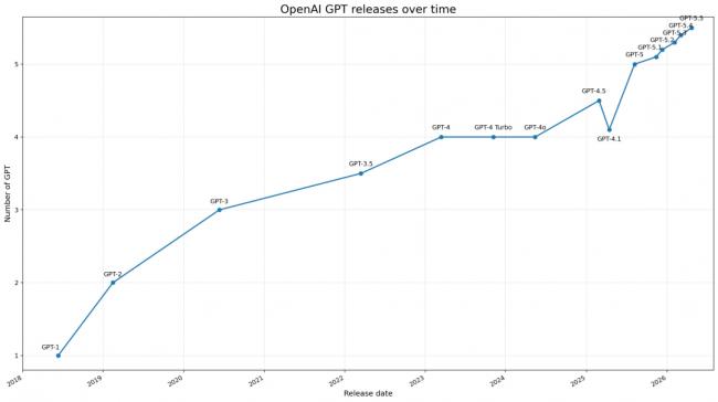 另壹張GPT發布時間的圖表,更是清晰顯示出:奇點已經近在咫尺!