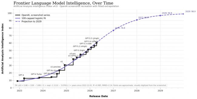 2026年春天,GPT-5.5系列發布,曲線直接進入指數區間。