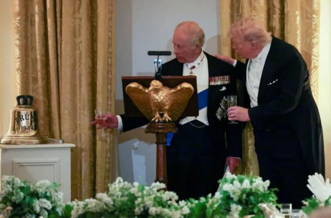 潛艇的名字跟川普家族沒有任何關系,純屬歷史巧合。但查爾斯顯然對這個巧合非常得意,他在致辭時說:“今晚,總統先生,我很高興將這口鍾作為私人禮物送給你。願它成為我們兩國共同歷史和光明未來的見證。”