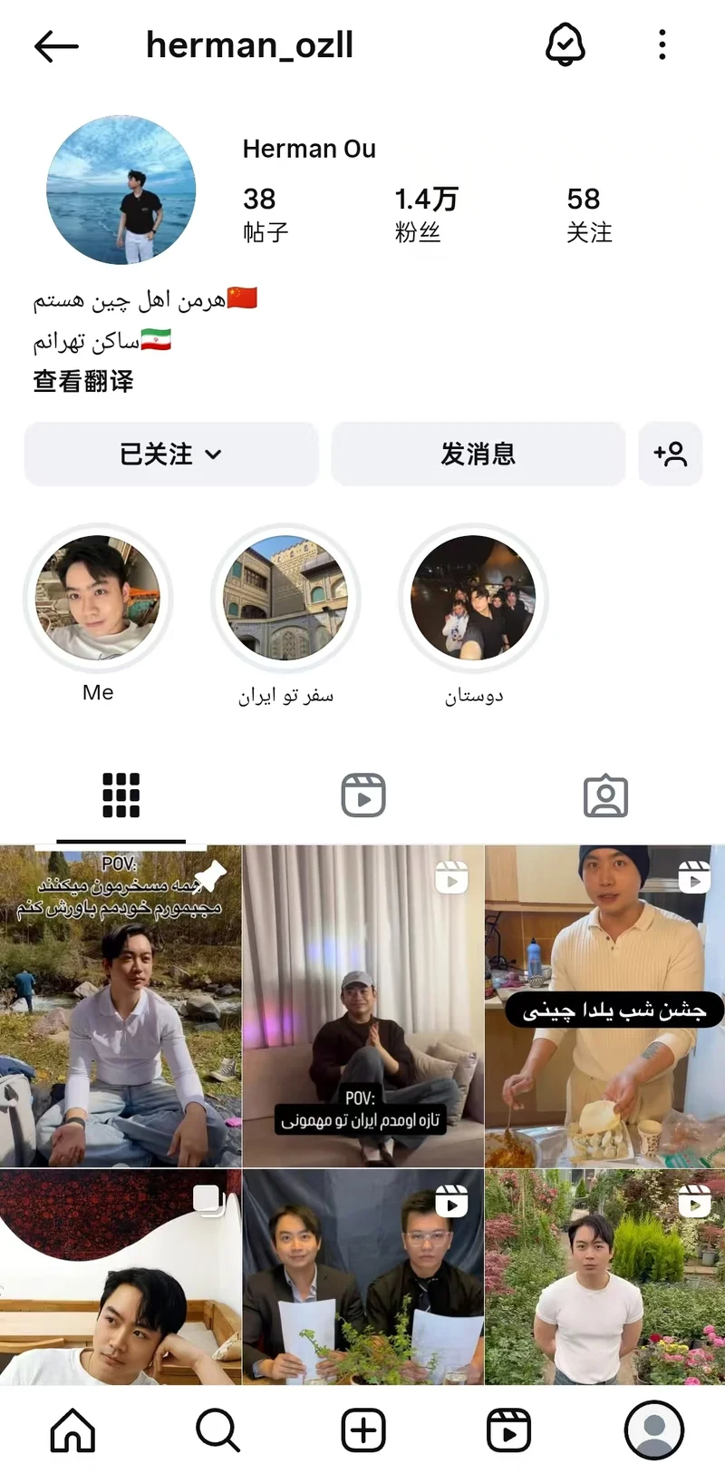 其實我高中、大學的時候挺i的,人也比較內斂。但在伊朗就覺得當地人怎麼這麼好,這麼熱情開朗,我也就跟著改變了。而且在伊朗我基本是壹個人,如果不大膽、不開朗、不跟當地人交流,就做不成事,這也算是壹個成長的過程。我還會反向做壹點文化輸出,之前在Instagram做過壹個賬號專門用波斯語科普中國文化,比如怎麼包餃子,做到了1.4萬粉絲。
