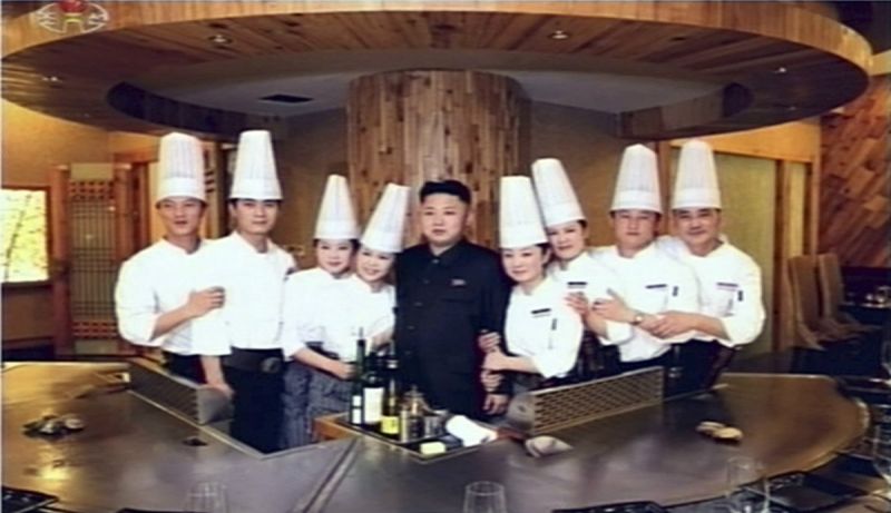 當地時間4月28日,朝鮮《勞動新聞》在頭版刊登了金正恩與夫人李雪主視察即將開業的鐵板燒店的照片。