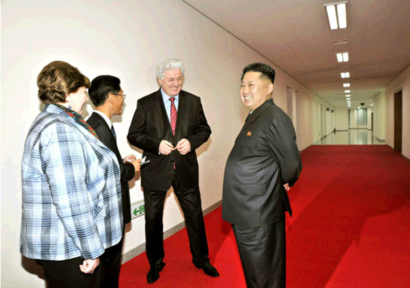 金正恩對前來朝鮮訪問的管弦樂團表示歡迎,並與他們親切交談。