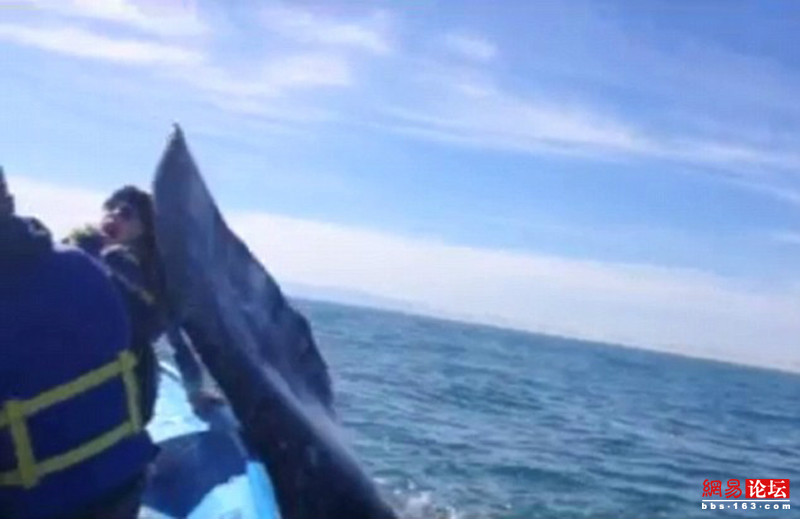 女子被鲸鱼尾鳍迎头痛击全程 图