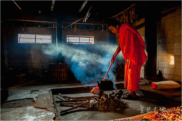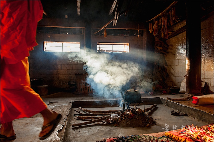 08 大部分和尚還沒起床呢,村民布施的飯菜,已經差不多擺滿壹桌了。