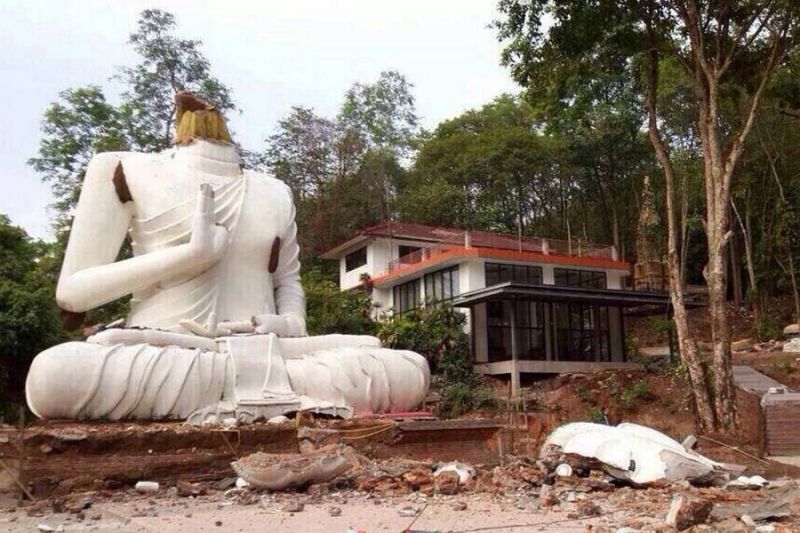 [雲南地震] 泰國地震大佛“斷頭”道路開裂(圖)