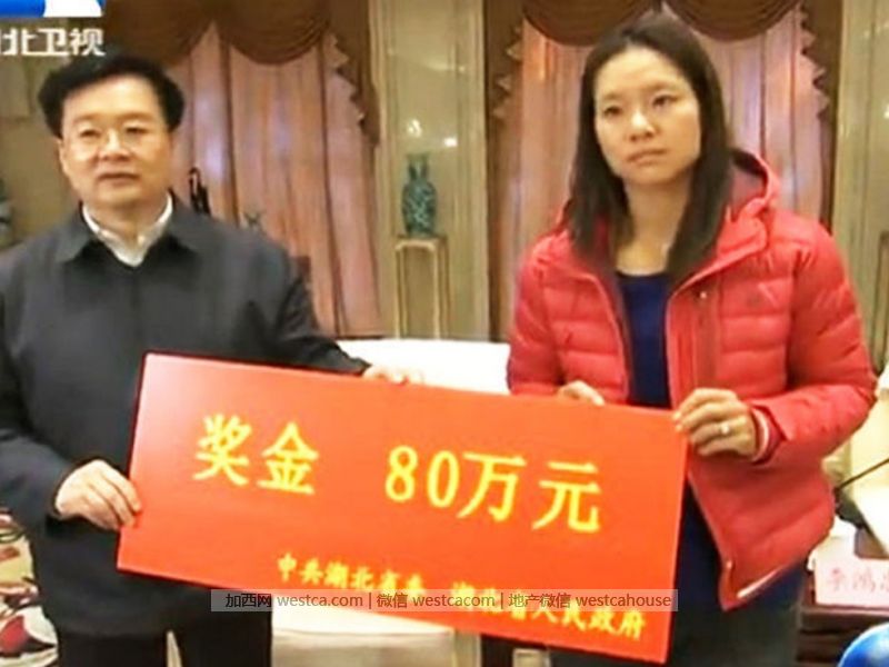 李娜法网夺冠后,被授予武汉市功勋市民称号,并获得奖金。(图片来源:3G门户)