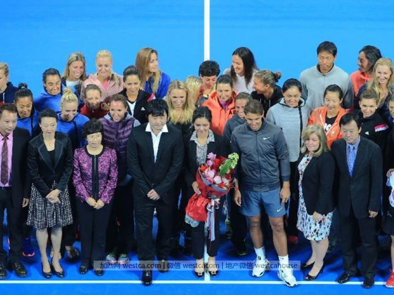 两名男性神秘嘉宾亮相,是纳达尔和姜山。西班牙人给李娜献花。姜山则给了妻子一个大大的拥抱。