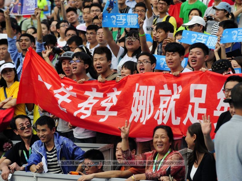 北京时间9月23日,球迷们在仪式上打出横幅为李娜助威。
