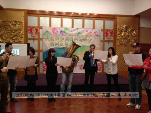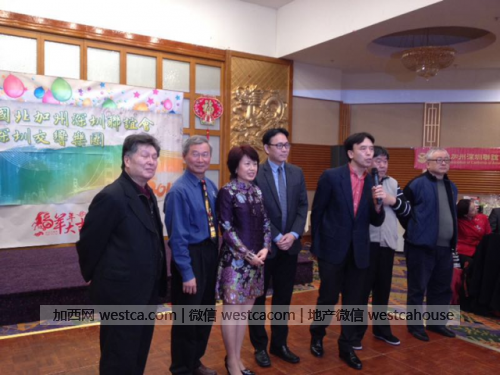 美国北加州深圳联谊会与深圳交响乐团2015年春节联欢会,2月19日于南湾王朝海鲜酒家举行。即将展开美国巡演的深圳交响乐团成员们,钢琴家殷承宗、指挥家蔡金冬与中国驻旧金山总领事馆文化参赞肖夏勇、库柏蒂诺市副市长张昭富及部分侨团人士共300余人出席。