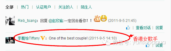 香港女歌手给曾小姐和赵欣瑜留言,称赞她们是:“one of best couple!”
