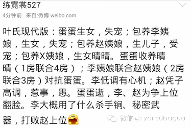 讽刺赵欣瑜“抛开叶家光环您姓赵不姓叶,一而再再而三的诽谤我跟我家人”