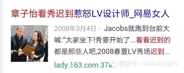 章子怡2008年看LV得秀遲到被拉黑