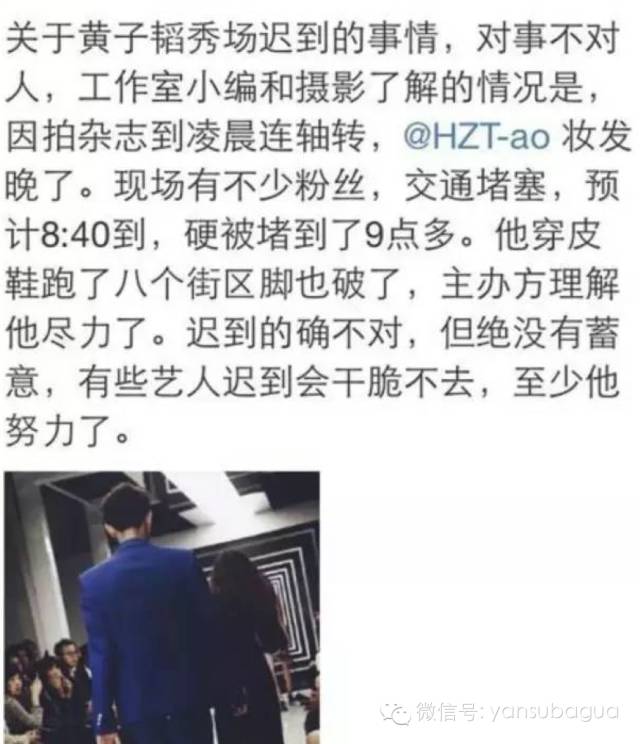 再說道路封鎖大家都受影響,為什麼就你黃子韜壹個人遲到還遲到這麼久?