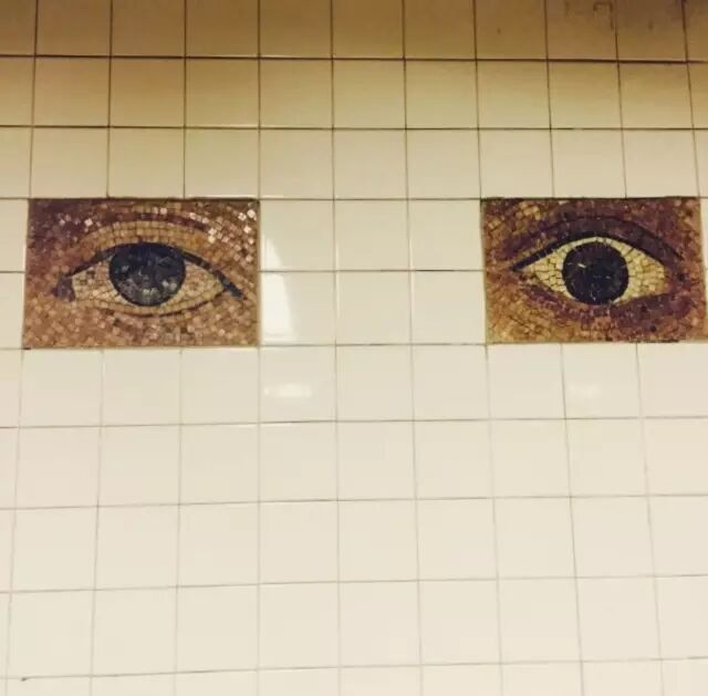 — 紐約E線World Trade Center地鐵站紐約地鐵裡的藝術畫時不時會被添上兩筆。比如這個眼睛瓷磚,右眼被篡改得毫無痕跡啊!摩姐想想半夜壹個人走出的地鐵看到這雙眼睛應該還蠻膽戰心驚的!